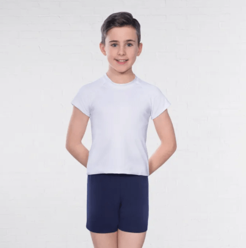 White T-shirt, Black Shorts and Black Ballet Shoes